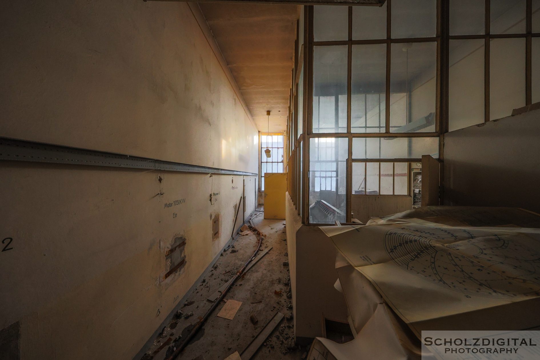 In den ehemaligen Bürotrakten stapeln sich noch Aktenordner. Auf vergilbten Etiketten stehen Namen, Produktionszahlen, alte Lieferscheine. In einem Raum hängt noch ein Kalender – eingefroren, als hätte man das Werk einfach von einem Tag auf den anderen verlassen.